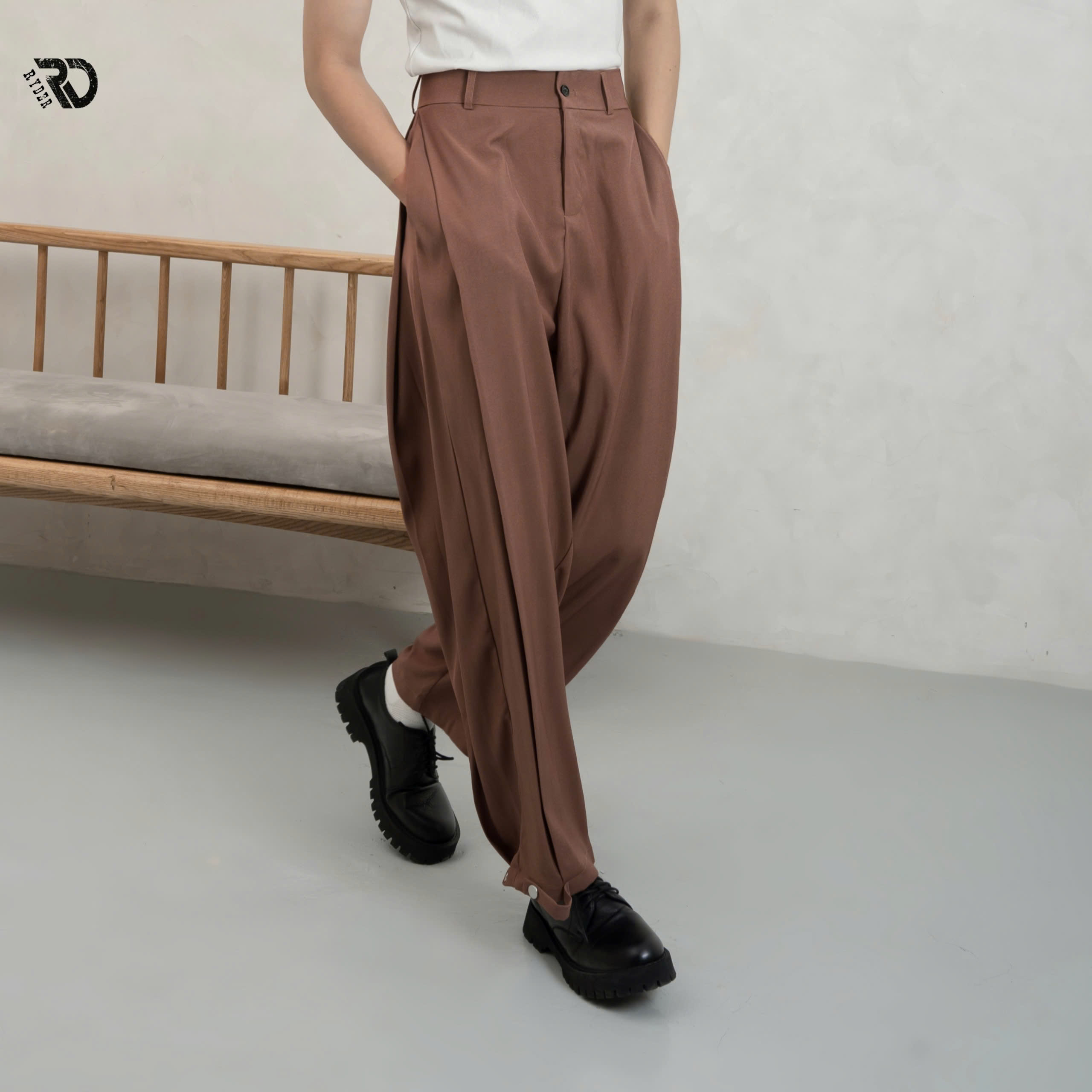 - Form: Pleated Wige-Led (Xếp Li ống rộng) - Chất liệu: Vải Chevron ( Vải chéo Mỹ)