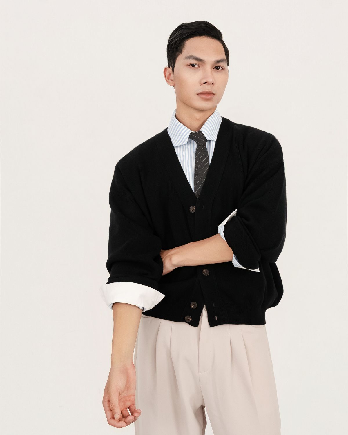 Dáng cardigan cài nút trước – dễ mặc, tiện layer.